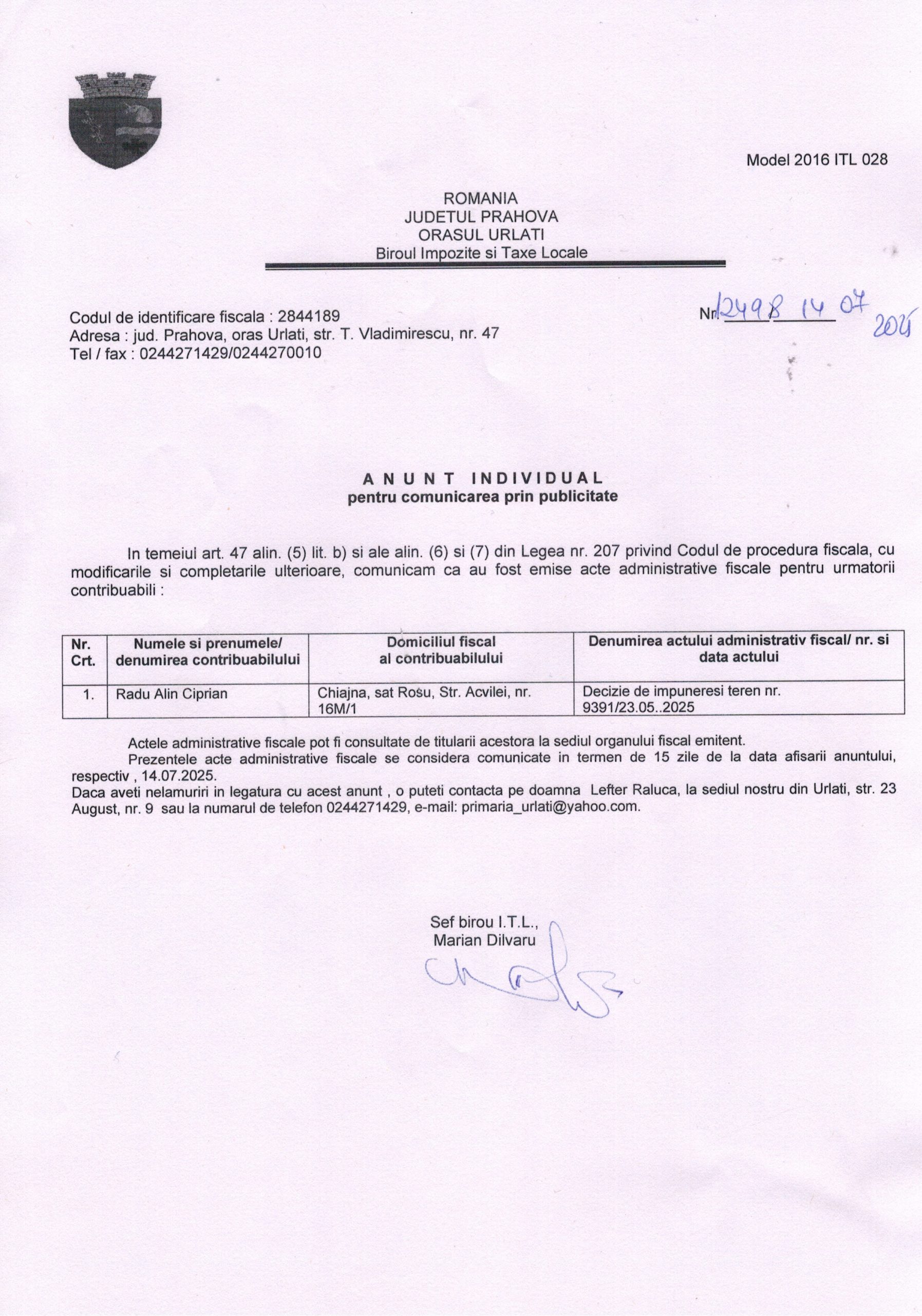 Anunț colectiv pentru comunicarea prin publicitate 14.07.2025